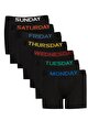 Premium Pamuklu Esnek Haftanın Günleri Baskılı 7'li Paket Siyah Boxer