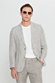 %100 Keten Slim Fit Dar Kesim Mono Yaka Kazayağı Desenli Bej Takım Elbise