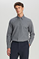 %100 Pamuk Flanel Slim Fit Dar Kesim Gizli Düğmeli Yaka Desenli Gri Gömlek