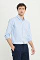 %100 Pamuk Regular Fit Normal Kesim Küçük İtalyan Yaka Armürlü Beyaz Gömlek