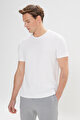 %100 Pamuk Slim Fit Dar Kesim Bisiklet Yaka Jakarlı Ekru Tişört