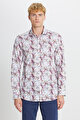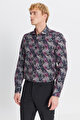 %100 Pamuk Slim Fit Dar Kesim Büyük İtalyan Yaka Baskılı SIYAH KIRMIZI Gömlek