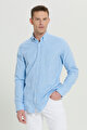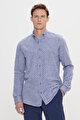%100 Pamuk Slim Fit Dar Kesim Düğmeli Yaka Armürlü Lacivert Gömlek