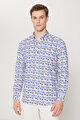 %100 Pamuk Slim Fit Dar Kesim Düğmeli Yaka Baskılı Bej-Bordo Gömlek