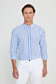 %100 Pamuk Slim Fit Dar Kesim Düğmeli Yaka Çizgili Lacivert-Beyaz Gömlek