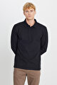 %100 Pamuk Slim Fit Dar Kesim Polo Yaka Jakarlı Ekru Uzun Kollu Tişört