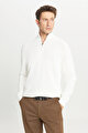 %100 Pamuk Standart Fit Normal Kesim Bato Yaka Jakarlı Triko Ekru Kazak