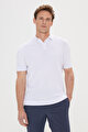 %100 Pamuk Standart Fit Normal Kesim Polo Yaka Armürlü Triko Beyaz Tişört