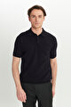%100 Pamuk Standart Fit Normal Kesim Polo Yaka Jakarlı Triko Siyah Tişört