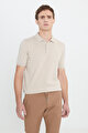 %100 Pamuk Standart Fit Normal Kesim Polo Yaka Triko Bej Tişört