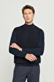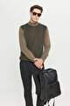 %100 Pamuk Standart Fit Normal Kesim Yarım Balıkçı Yaka Jakarlı Triko Haki-Siyah Kazak