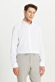 %100 Pamuklu Slim Fit Gizli Düğmeli Yaka Armürlü Beyaz Gömlek