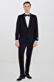 %100 Yün Slim Fit Dar Kesim Çıkma Kırlangıç Yaka Beli Gizli Lastikli Fleto Cepli Siyah Smokin Takım