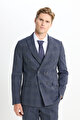 %100 Yün Slim Fit Dar Kesim Kırlangıç Yaka Kareli Kruvaze Lacivert Takım Elbise