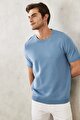 360 Derece Her Yöne Esneyen Slim Fit %100 Pamuk Mavi Tişört