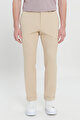 360 Derece Her Yöne Esneyen Slim Fit Dar Kesim Diagonal Desenli Beli Bağlamalı Örme Bej Pantolon