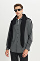 360 Her Yöne Esneyen Pamuklu Comfort Fit Klasik Yaka Diagonal Desenli Örme Gri Gömlek