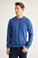 Anti-Pilling Tüylenme Yapmayan Standart Fit Normal Kesim Bisiklet Yaka Triko İndigo Kazak