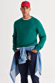 Anti-Pilling Tüylenme Yapmayan Standart Fit Normal Kesim Bisiklet Yaka Triko Koyu Yeşil Kazak