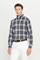 Comfort Fit Rahat Kesim Düğmeli Yaka Ekose Desenli Oduncu Siyah Gömlek