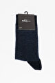 Desenli Bambu Tekli Lacivert-Mavi Çorap