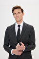Ekstra Slim Fit Dar Kesim Kırlangıç Yaka Çizgili Antrasit Takım Elbise