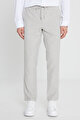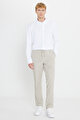 Keten Slim Fit Dar Kesim Beli Bağlamalı Çizgili Casual Vizon Pantolon