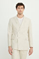 Keten Slim Fit Dar Kesim Kırlangıç Yaka Desenli Torba Cepli Kruvaze Bej Takım Elbise