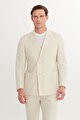 Keten Slim Fit Dar Kesim Kırlangıç Yaka Desenli Torba Cepli Kruvaze Bej Takım Elbise