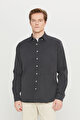 Pamuklu Comfort Fit Rahat Kesim Gizli Düğmeli Yaka Antrasit Gömlek