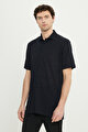 Pamuklu Comfort Fit Rahat Kesim Klasik Yaka Örme Siyah Gömlek