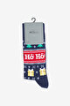 Pamuklu Desenli Tekli Soket Lacivert Çorap