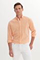 Pamuklu Keten Comfort Fit Rahat Kesim Düğmeli Yaka Armürlü Mavi Gömlek