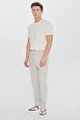 Pamuklu Keten Slim Fit Beli Bağlamalı Çizgili Bej Pantolon