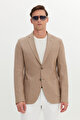 Pamuklu Keten Slim Fit Dar Kesim Mono Yaka Torba Cepli Vizon Ceket
