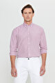 Pamuklu Regular Fit Normal Kesim Düğmeli Yaka Cepli Çizgili Beyaz-Bordo Gömlek
