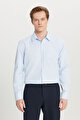 Pamuklu Regular Fit Normal Kesim Klasik Yaka Armürlü Açık Mavi Gömlek