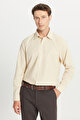 Pamuklu Regular Fit Normal Kesim Klasik Yaka Armürlü Bej Gömlek
