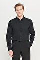 Pamuklu Slim Fit Dar Kesim Düğmeli Yaka Diagonal Desenli Flanel Siyah Gömlek
