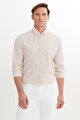 Pamuklu Slim Fit Dar Kesim Düğmeli Yaka Kareli Beyaz-Bej Gömlek