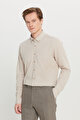 Pamuklu Slim Fit Dar Kesim Düğmeli Yaka Örme Bej Gömlek