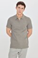 Pamuklu Slim Fit Dar Kesim Jakarlı Polo Yaka Ekru Tişört
