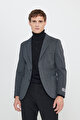 Pamuklu Slim Fit Dar Kesim Kırlangıç Yaka Diagonal Desenli Torba Cepli Blazer Siyah Ceket