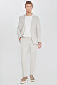 Pamuklu Slim Fit Dar Kesim Mono Yaka Diagonal Desenli Kapak Cepli Bej Takım Elbise