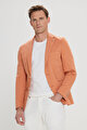 Pamuklu Slim Fit Dar Kesim Mono Yaka Kapak Cepli Somon Ceket