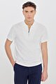Pamuklu Slim Fit Dar Kesim Polo Yaka Jakarlı Esnek Beyaz Tişört