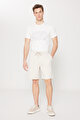 Pamuklu Slim Fit Dar Kesim Yan Cepli Esnek Örme Bej Şort