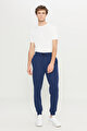 Pamuklu Standart Fit Beli Bağlamalı Desenli Yan Cepli Lacivert Eşofman Altı