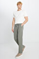 Pamuklu Standart Fit Normal Kesim Beli Lastikli Diagonal Desenli Örme Haki Pantolon