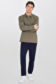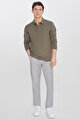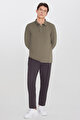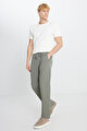 Pamuklu Standart Fit Normal Kesim Beli Lastikli Diagonal Desenli Örme Kahverengi Pantolon